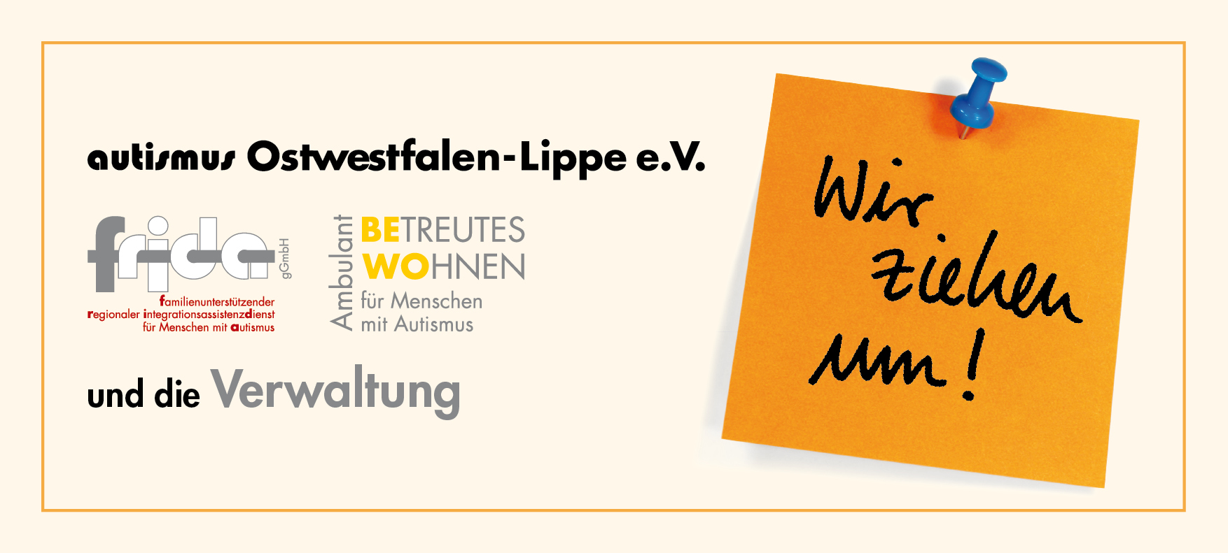 Ab Montag, 5. März 2018, arbeitet der Verein autismus Ostwestfalen-Lippe e.V. mit seinen Diensten FRIDA und BeWo vom neuen Standort an der Herforder Str. 127 aus (im Gebäude rechts...